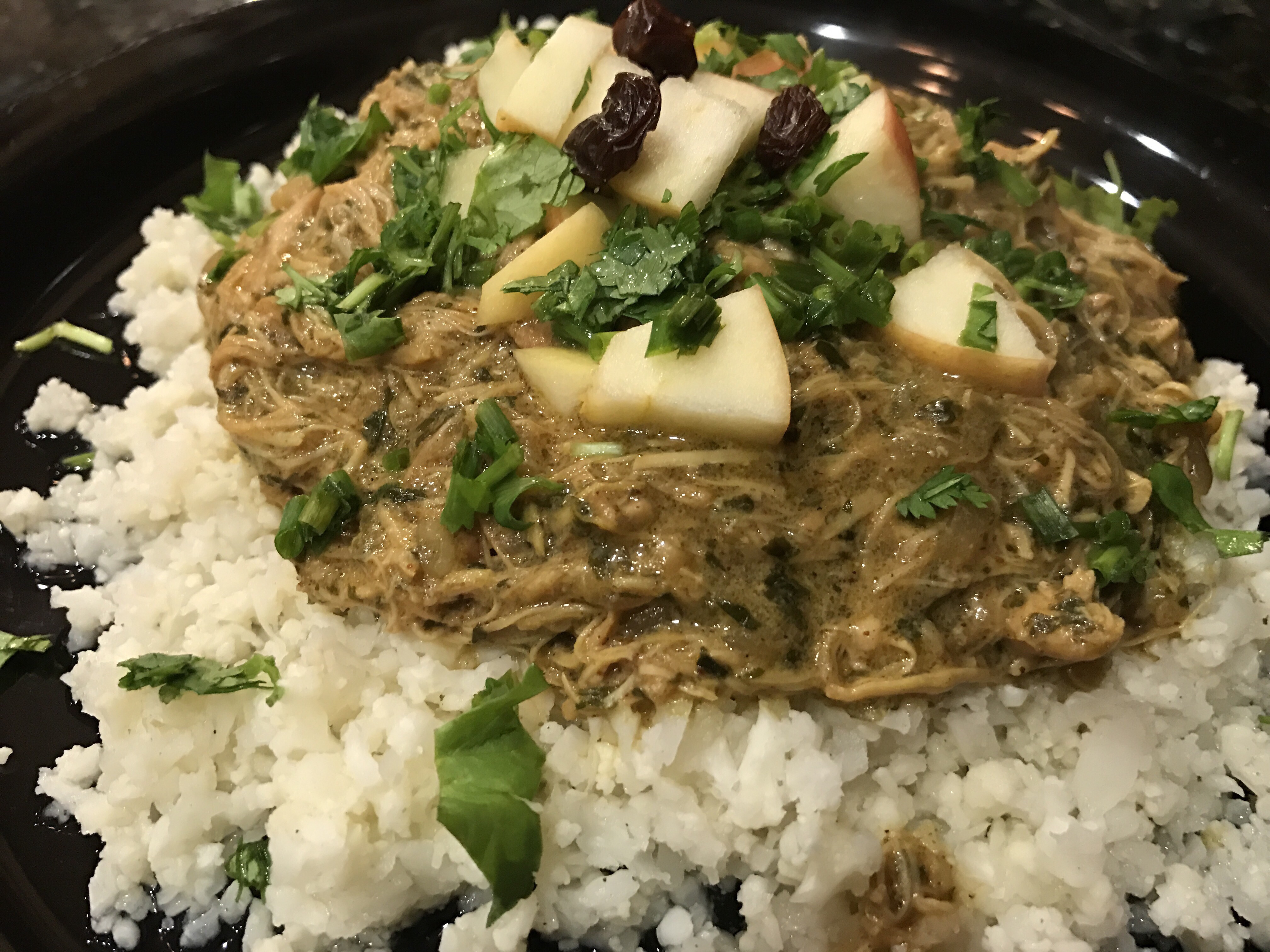 We served this on cauliflower rice, with a side of roasted broccoli, and garnished it with the fresh chives, apple, and cilantro. I paired this with the Gnarly Head Old Vine Zin.