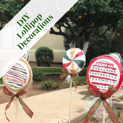This is our second time around making these DIY Lollipop Christmas Decorations. The first time we made them, they weathered two Arizona winter’s before looking a little rough. They are so easy and inexpensive to make, that I tossed them in the recycle bin, and started fresh this year.