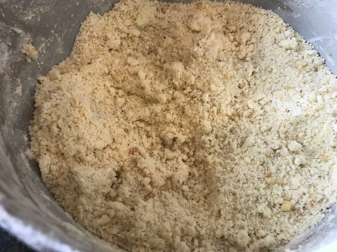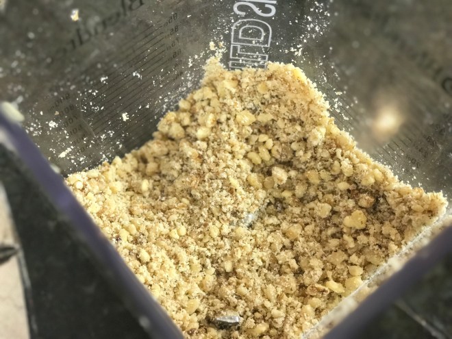 Step 2: Chop the walnuts. I chopped mine using the Blendtec on the lowest setting. Once chopped, I added them to the dough and continued mixing.