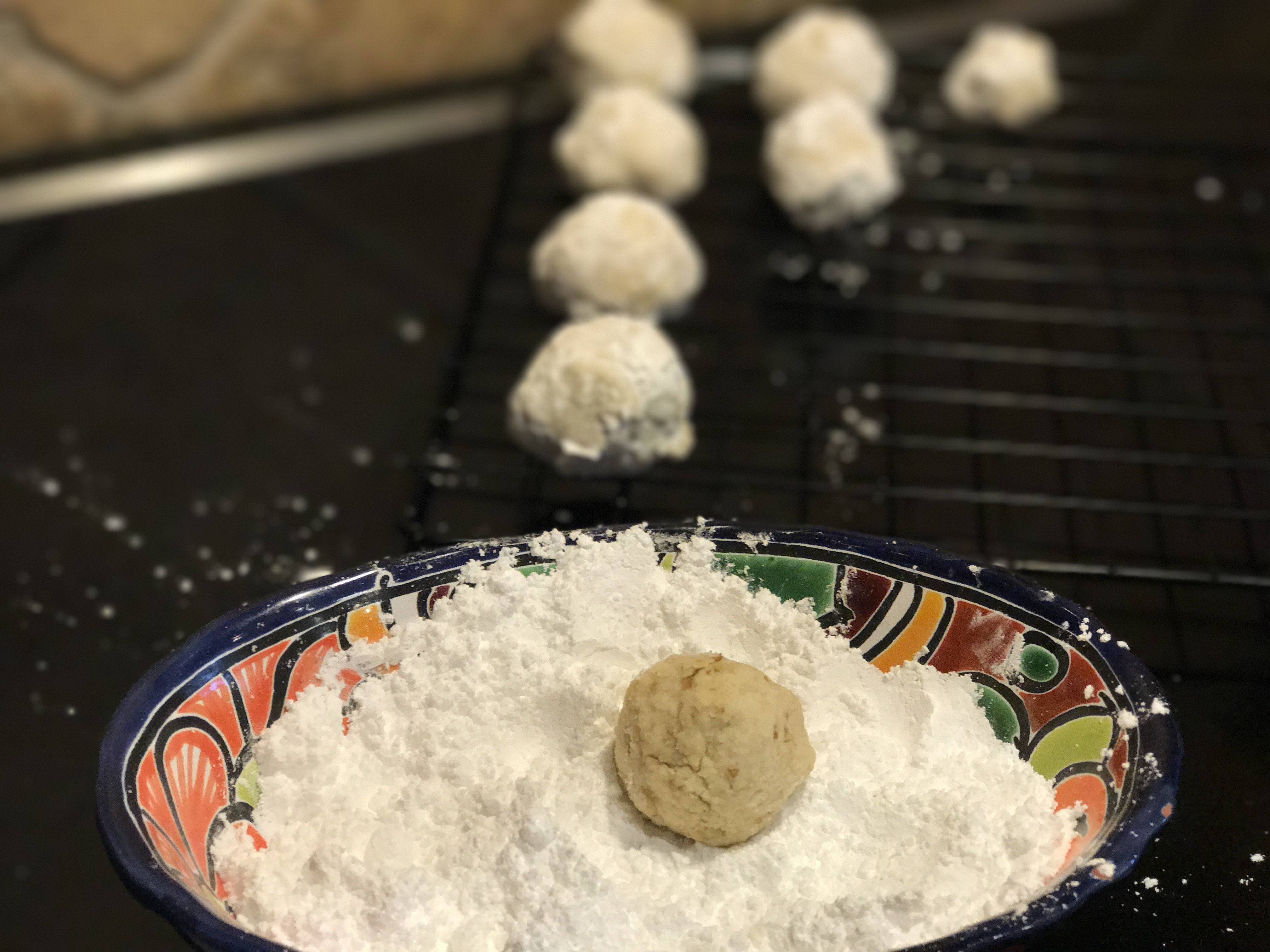Step 7: Cool the cookies on a baking rack for 2 minutes. While the cookies are still warm, roll in the confectioners sugar, and place back on the cooling rack.