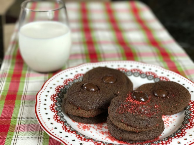 This year I was going to give Santa a variety of cookies, but there Peppermint Cocoa Cookies are so good, that there might not be any left when he arrives!