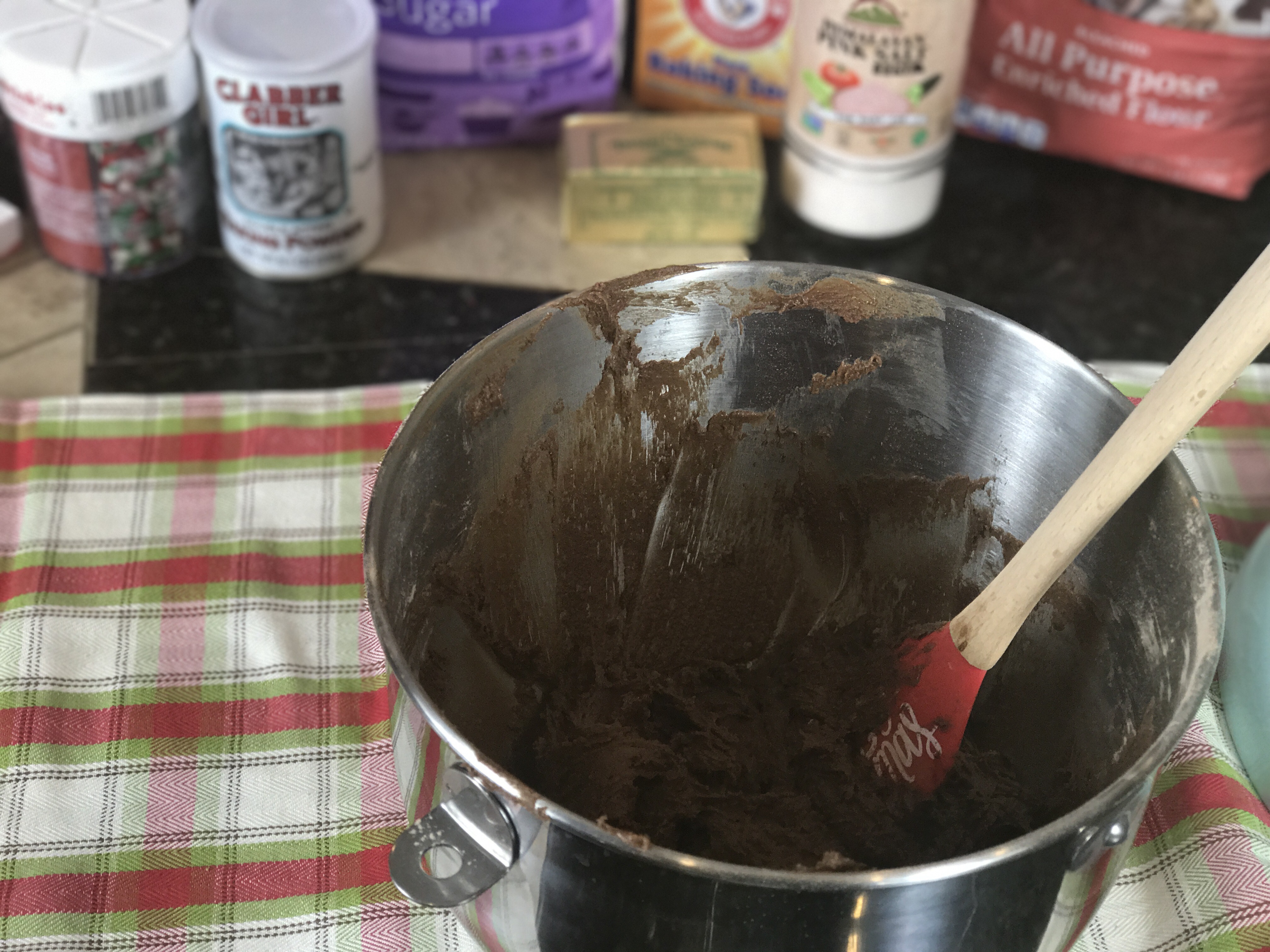 Step 2: Cream together the butter and both sugars. Add in 1 egg at a time and continue mixing. Next, mix in the mint extract.