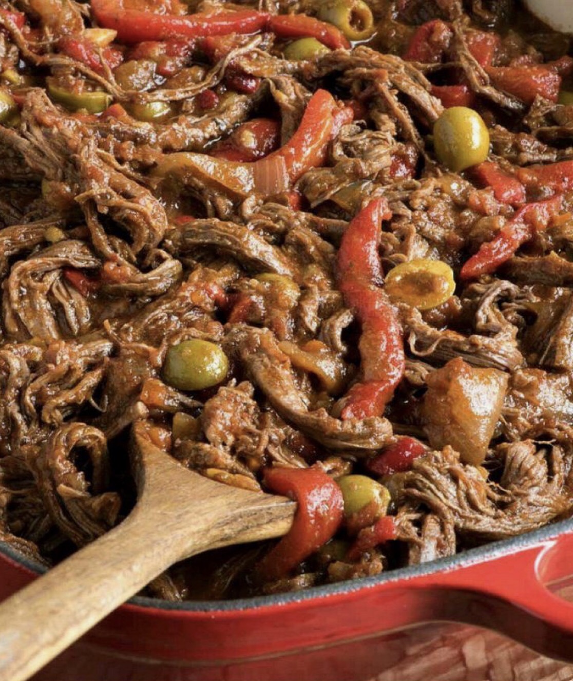 One year I received a crock pot as a Christmas gift and it sat in the packaging for the next 4 years. I finally took it out of the box, gave it a shot, and haven’t looked back since! I absolutely love slow cookers! Especially during the summertime in Arizona when the oven heats up your already hot house! This week I made Ropa Vieja and I made so much of it that it lasted three meals! Two dinners and a breakfast. The first night we had Ropa Vieja topped with a friend egg. Two nights later we had tacos and Bacon Wrapped Chorizo Jalapeños , and this morning we had shredded beef scrambled eggs!