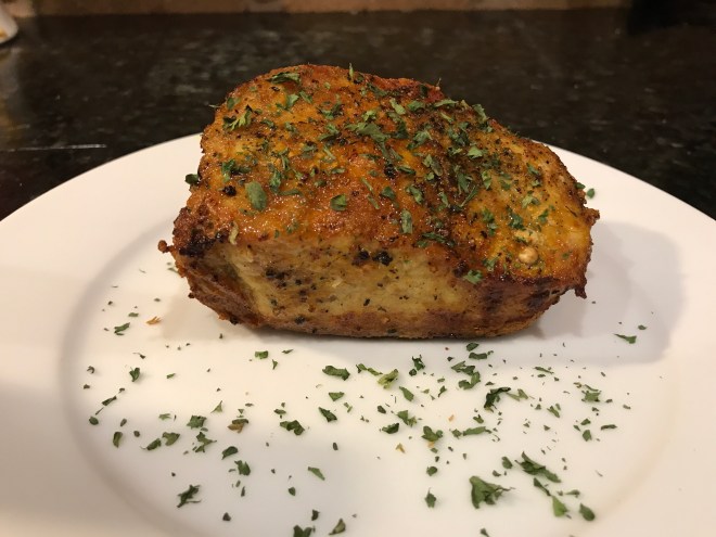 Our pork chops were about 8 ounces each and the calorie count accounts for the coconut oil absorbed during cooking and the extra oil added after it was played. They had roughly 800 Calories, 69 Grams Of Fat, 48 Grams Of Protein, and 0 Net Carbs.