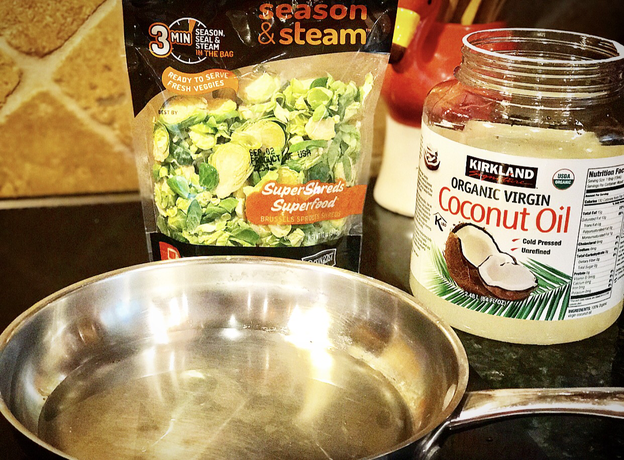 Step 1: Sautée the Brussel Sprouts in 1/2 cup of coconut oil.