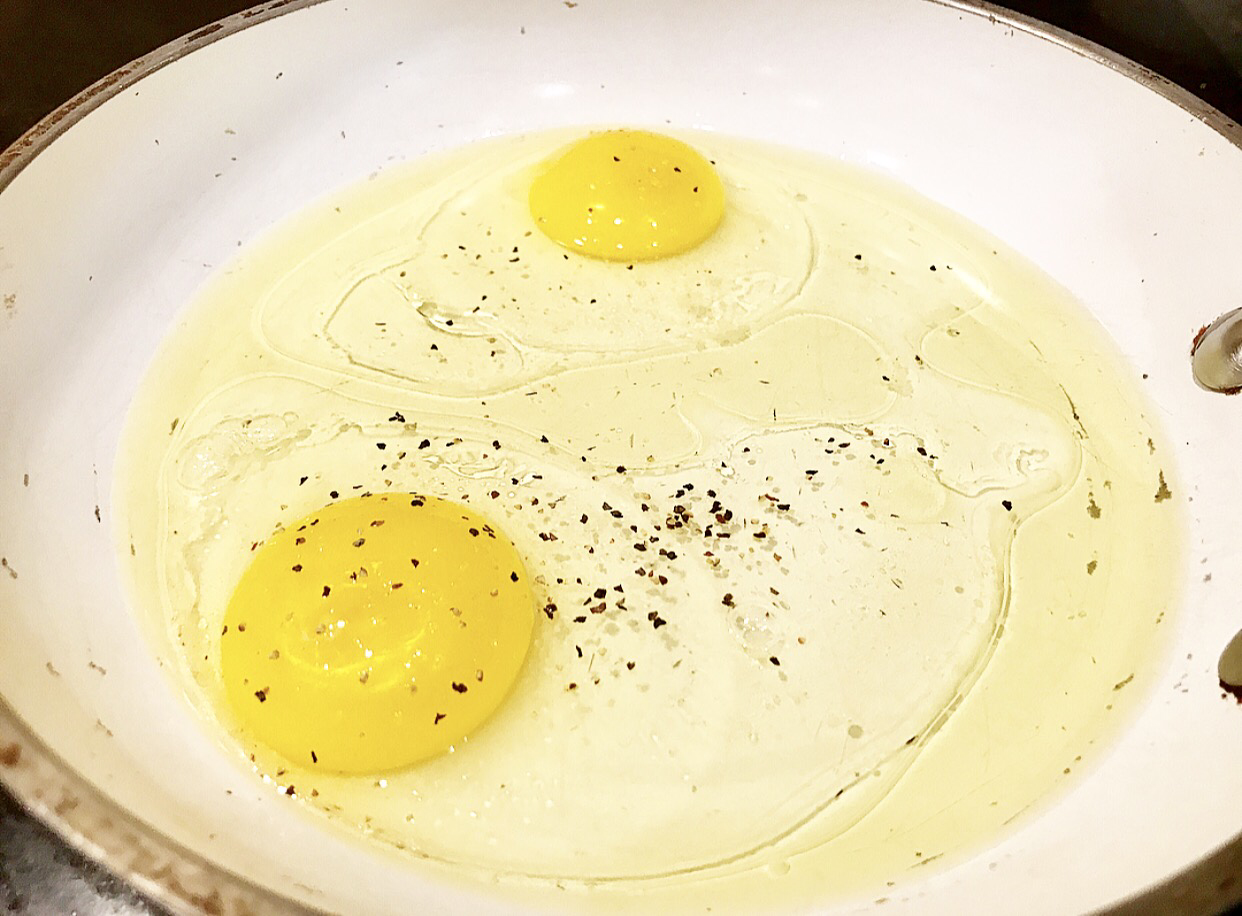 Step 5: Fry the eggs! I had planned on cooking them in the bacon grease, but last minute switched to Avocado oil because I wanted to use the bacon grease for dinner tonight.