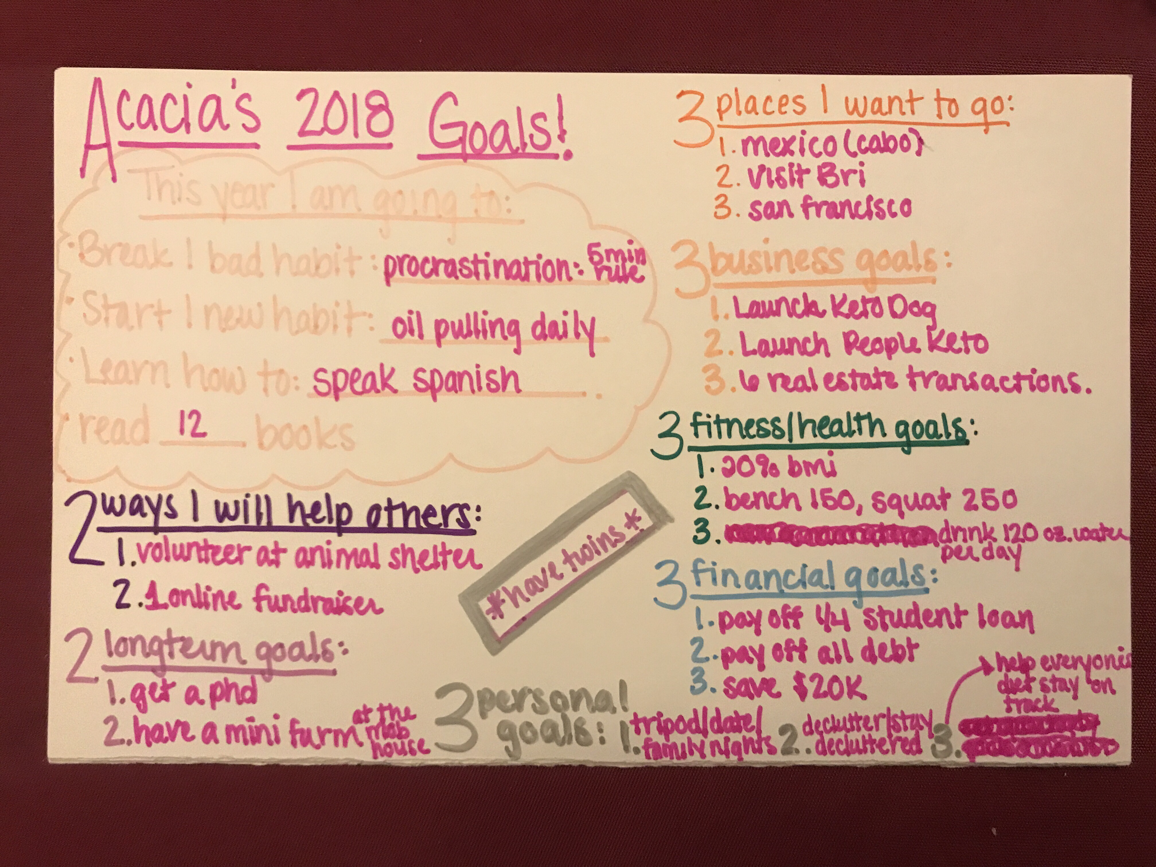 As we begin 2018 I want to keep the positive momentum going. Tonight, our family sat down and each wrote out some of our goals for the coming year. My plan is to hang them in our kitchen as a daily reminder of where we want to be, going into 2019.